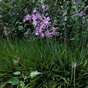![]() ORIGINE : Afrique du Sud EXPOSITION : Soleil ou mi-ombre RUSTICITE : R - 10° Vivace tubéreuse à rhizomes courts. Touffes de feuilles persistantes vert-gris aromatiques. Fleurs mauves en ombelles du printemps à l'automne. La plante dégage une forte odeur d'ail et les fleurs sont comestibles. Ht 50cm. PRIX : 1.5L 6€ |