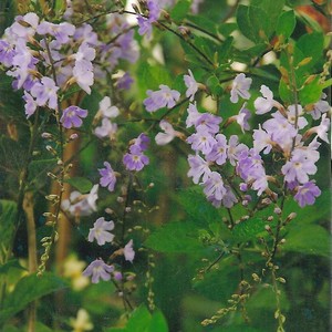 ![]() ORIGINE : Inde EXPOSITION : Soleil ou mi-ombre RUSTICITE : R. - 5° Liane vigoureuse à grandes feuilles vertes foncées. Grandes fleurs en racèmes bleu ciel en été et automne. Tès belle plante. Ht 4m. PRIX : 3L 22€ (tipi) |