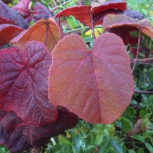 ![]() ORIGINE : Japon EXPOSITION : Soleil ou mi-ombre RUSTICITE : R. - 20° Très vigoureuse grimpante à vrilles. Grandes feuilles caduques arrondies vert clair tournant à l’écarlate en automne. De petits raisins noirs à pruine appairaissent en fin d'été. Ht 15m. PRIX : 1.5L 8€ / 3L 16€ |