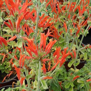 ![]() ORIGINE : Uruguay EXPOSITION : Soleil ou mi-ombre RUSTICITE : R - 10° Feuilles caduques grises duveteuses. Fleurs tubulaires rouge orangé de juin à septembre. Couvre-sol. Ht 40cm PRIX : |
