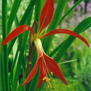 ![]() ORIGINE : Amérique centrale EXPOSITION : RUSTICITE : R - 5° Vivace bulbeuse aux feuilles en lanières. Grandes fleurs rouge cramoisi sur hampes florales rouges de 40cm au printemps. PRIX : 1.5L 8€ / 3L 12€ |