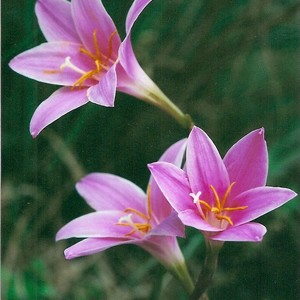 ![]() ORIGINE : Afrique du Sud EXPOSITION : Soleil ou mi-ombre RUSTICITE : R. - 8° Vivace bulbeuse aux hampes de fleurs roses parfumées en automne. Le feuillage apparaît après la floraison.Tenir sec en été. Sol drainé. PRIX : Non disponible |