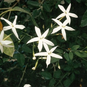 ![]() ORIGINE : Açores EXPOSITION : Soleil ou mi-ombre RUSTICITE : R. - 6° Grimpante à rameaux volubiles arrondis. Feuilles opposées persisantes à 3 folioles vert brillant. Fleurs blanches très parfumées de mai à octobre. PRIX : 3L 35? 5L 50? |