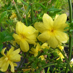 ![]() ORIGINE : Chine EXPOSITION : Soleil ou mi-ombre RUSTICITE : R. - 15° Feuillage caduc. Fleurs jaune vif en hiver et début de printemps. Ht 3m. PRIX : 3L 15€ |