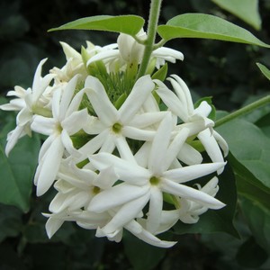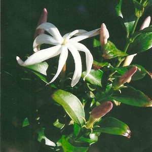 ![]() ORIGINE : Inde EXPOSITION : Soleil ou mi-ombre RUSTICITE : R - 5° Fleurs blanches parfumées de mai à octobre, feuillage persistant vert foncé. PRIX : |