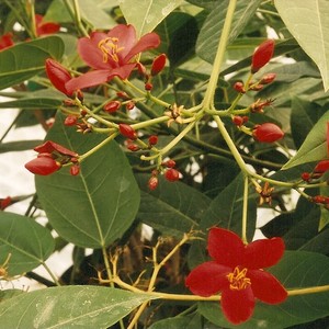 ![]() ORIGINE : Cuba EXPOSITION : Soleil ou mi-ombre RUSTICITE : Non rustique Feuilles persistantes vertes luisantes. Bouquets de fleurs tubulaires rouges. Très longue floraison. A hiverner à +5°. PRIX : 1.5L 16€ |