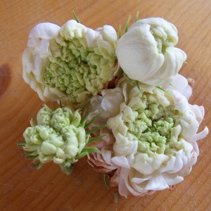 ![]() ORIGINE : EXPOSITION : Soleil ou mi-ombre RUSTICITE : R. - 4° à rentrer en hiver Arbuste grimpant à feuillage persistant. Grandes feuilles simples, brillantes. Fleurs blanches à pétales plus petits que le type. Floraison de juin à octobre. Le plus parfumé des Jasmin de sambac. PRIX : 1L 15€ 3L 35? 4L 45€ (palette) |