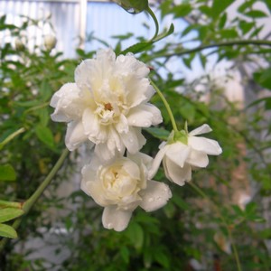 ![]() ORIGINE : Chine EXPOSITION : Soleil ou mi-ombre RUSTICITE : R -12° Liane vigoureuse sans épine à feuillage semi-persistant. Fleurs blanches doubles parfumées en bouquets au printemps. Ht 10m et plus. PRIX : 3L 24€ |
