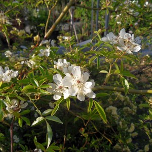 ![]() ORIGINE : Chine EXPOSITION : Soleil ou mi-ombre RUSTICITE : R -12° Liane vigoureuse sans épine à feuillage semi-persistant. Fleurs blanches simples parfumées en bouquets au printemps. PRIX : 3L 24€ |